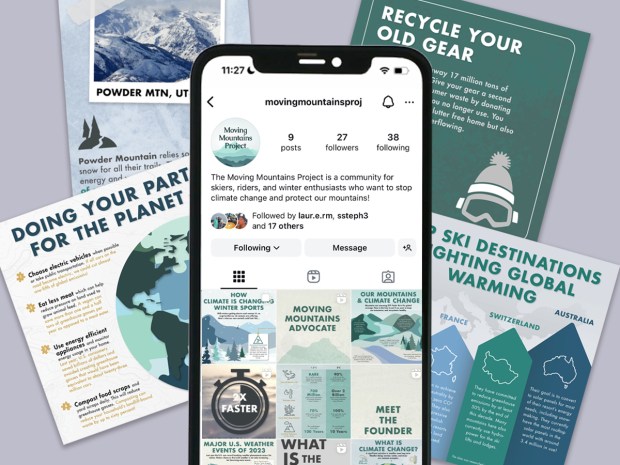 As the final week of my project comes to a close, I feel a bit out sorts of what I will do will all my free time after this project ends. For the past six weeks, I have spent many hours preparing, designing and posting about climate change and how the skiers and snowboarders in my area can help to do their part for the planet. While this project has been an overwhelmingly positive experience, it feels a little surreal that I’m done with the research and design part, and almost done posting to Instagram! As I have been watching my grid fill up with posts, I have only recently realized that I finished all I had set out to do with the campaign.