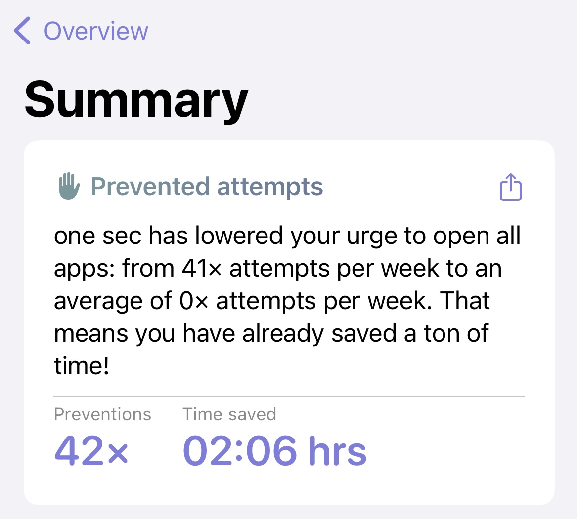 At the end of the five days I looked over my data and noticed that my overall screen time and how many times I picked up my phone went down significantly. According to the One Sec app, I started to open Instagram up much less, almost by half, and I saved about two hours and six minutes of scrolling time in just five days! This experiment showed me how often I reach for my phone and how most of the time its to check Instagram, when I could be doing so many other things!