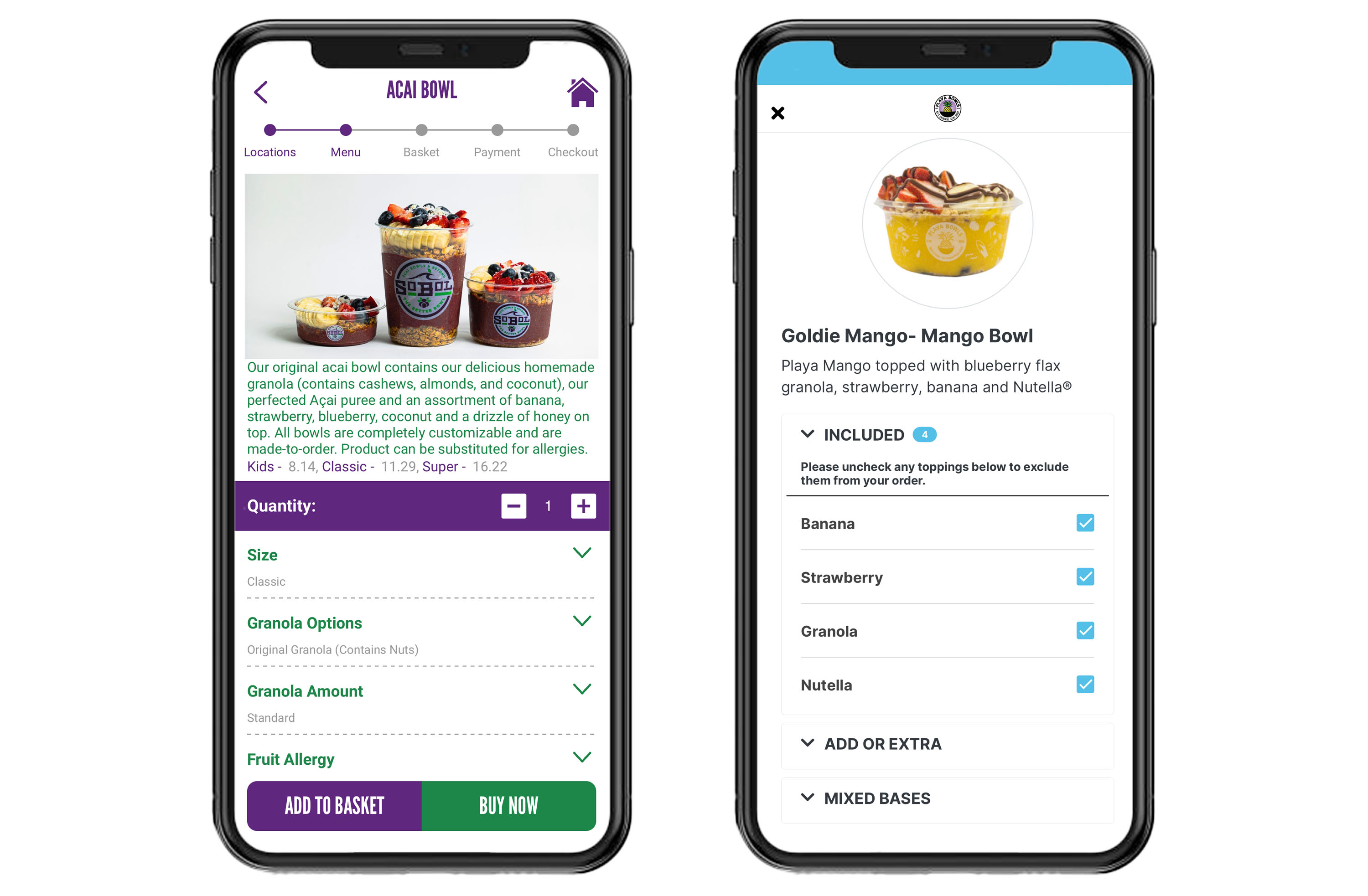When looking at the order process for each app, SoBowl had me feeling confident, satisfied, and carefree because my needs for ease, flow, and integrity were met. Going through the full order process was a breeze. With a progress bar at the top, I could see where I was in the task. I also liked that I was able to add to my basket or fully checkout right from the menu screen, making orders that much easier. When testing Playa Bowls, the ordering process was actually very similar. Here I felt open, delighted, and pleased because my need to understand, to have ease when ordering, and inclusion were met. I loved that the steps were structured and had large photos of products and descriptions. It was easy to go through and customize in both apps, which is something I love about them.