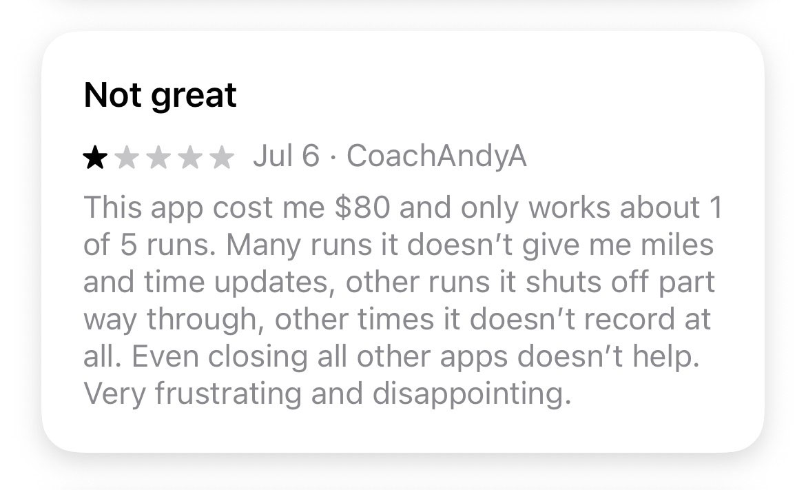 With the Strava app, users complained that the app only worked sometimes, with little to no reason why.